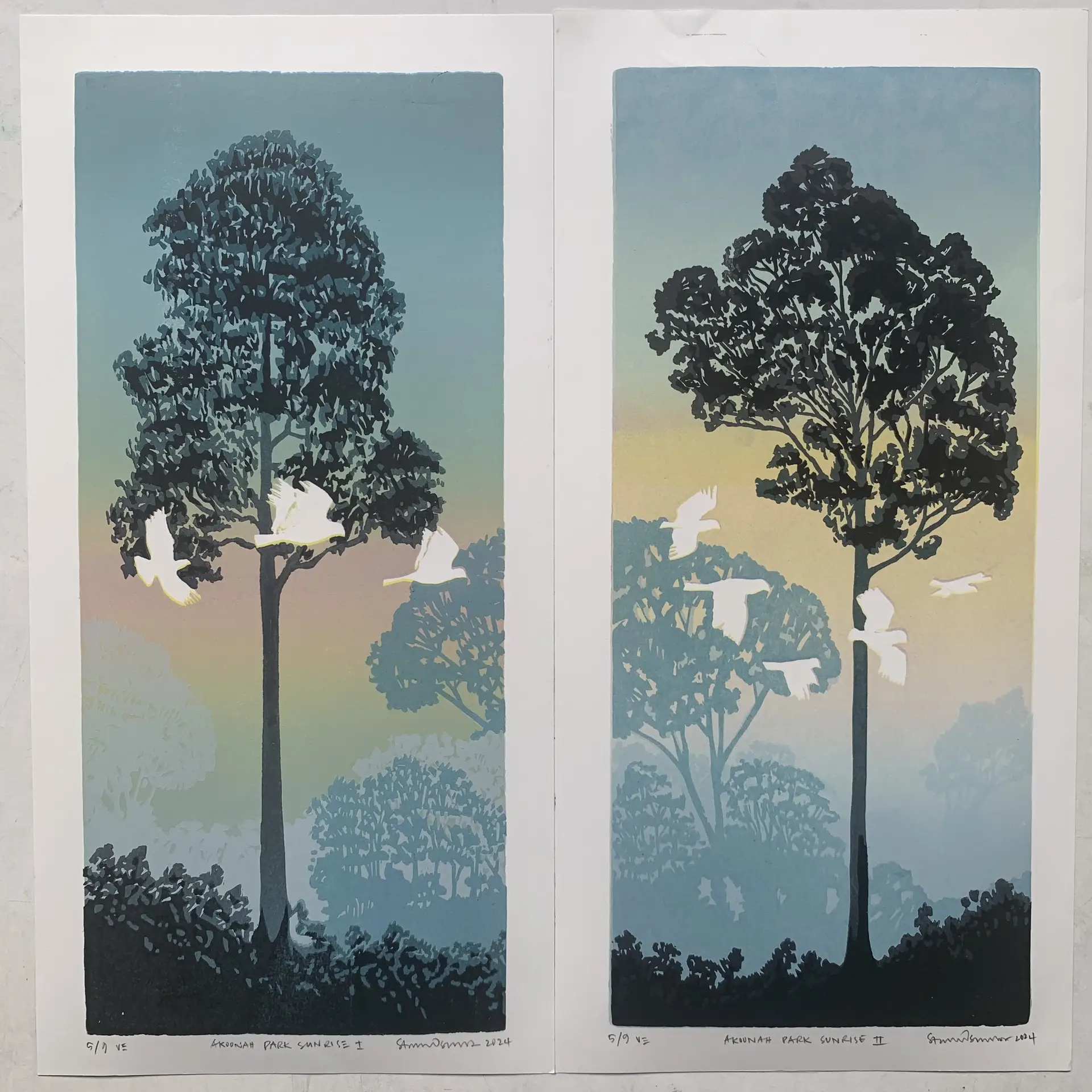 Akoonah Sunrise 1 & 2 – Limited Edition Linocut