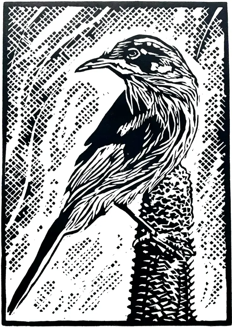 Each print is designed, cut from a block and printed within its quarter, then posted out to celebrate that season. Inspiration is unknown until each season begins.