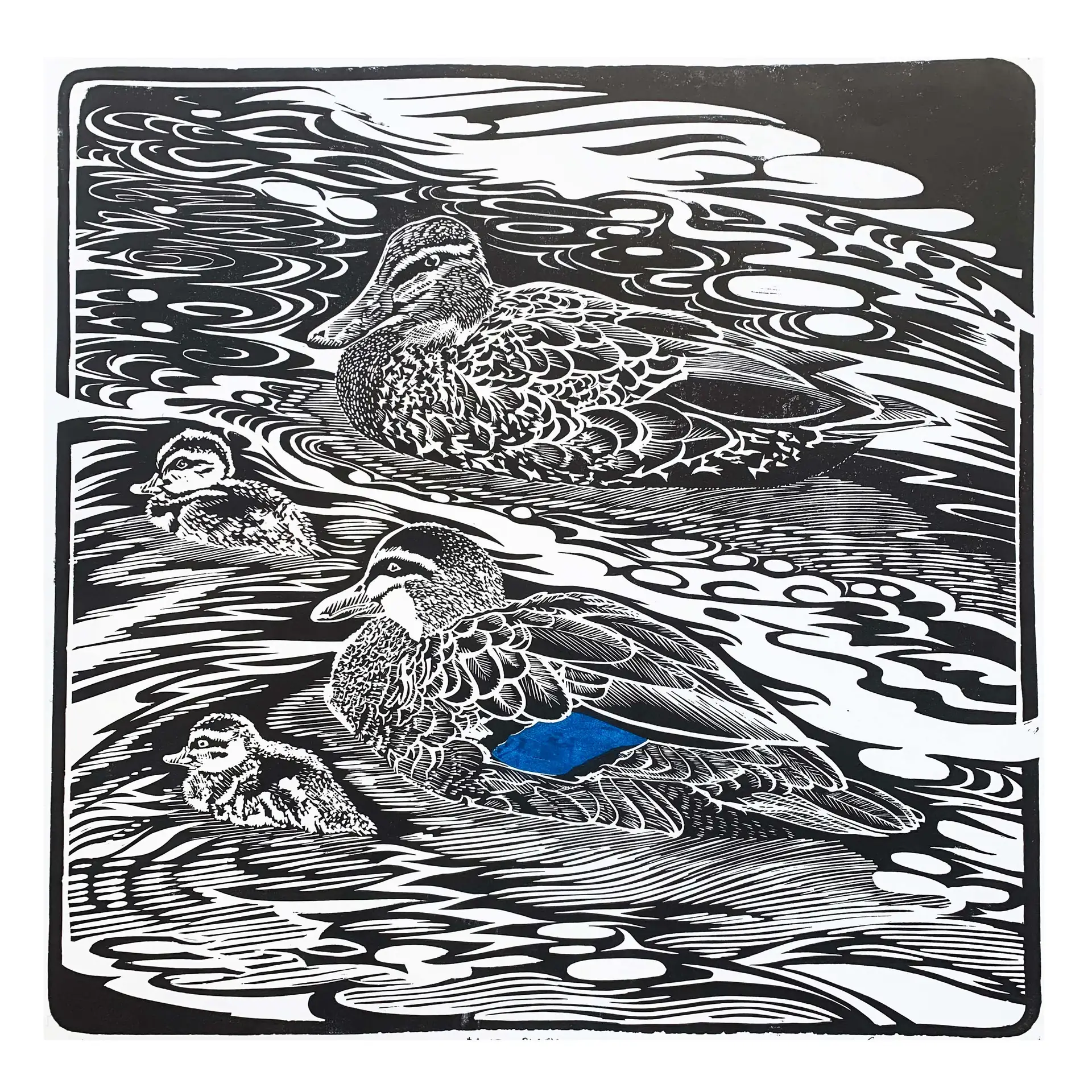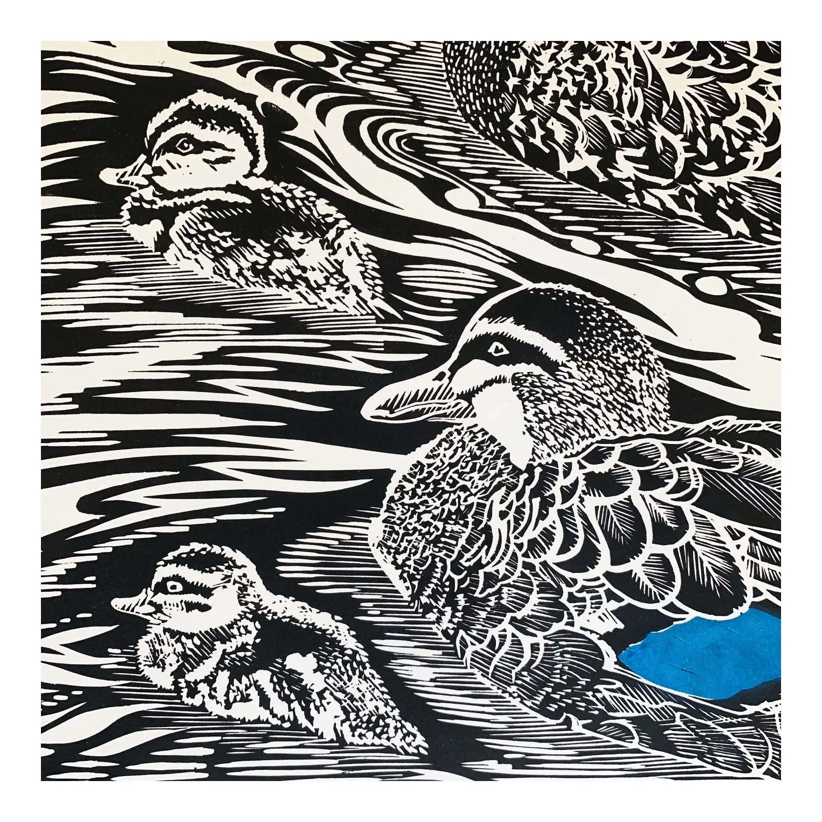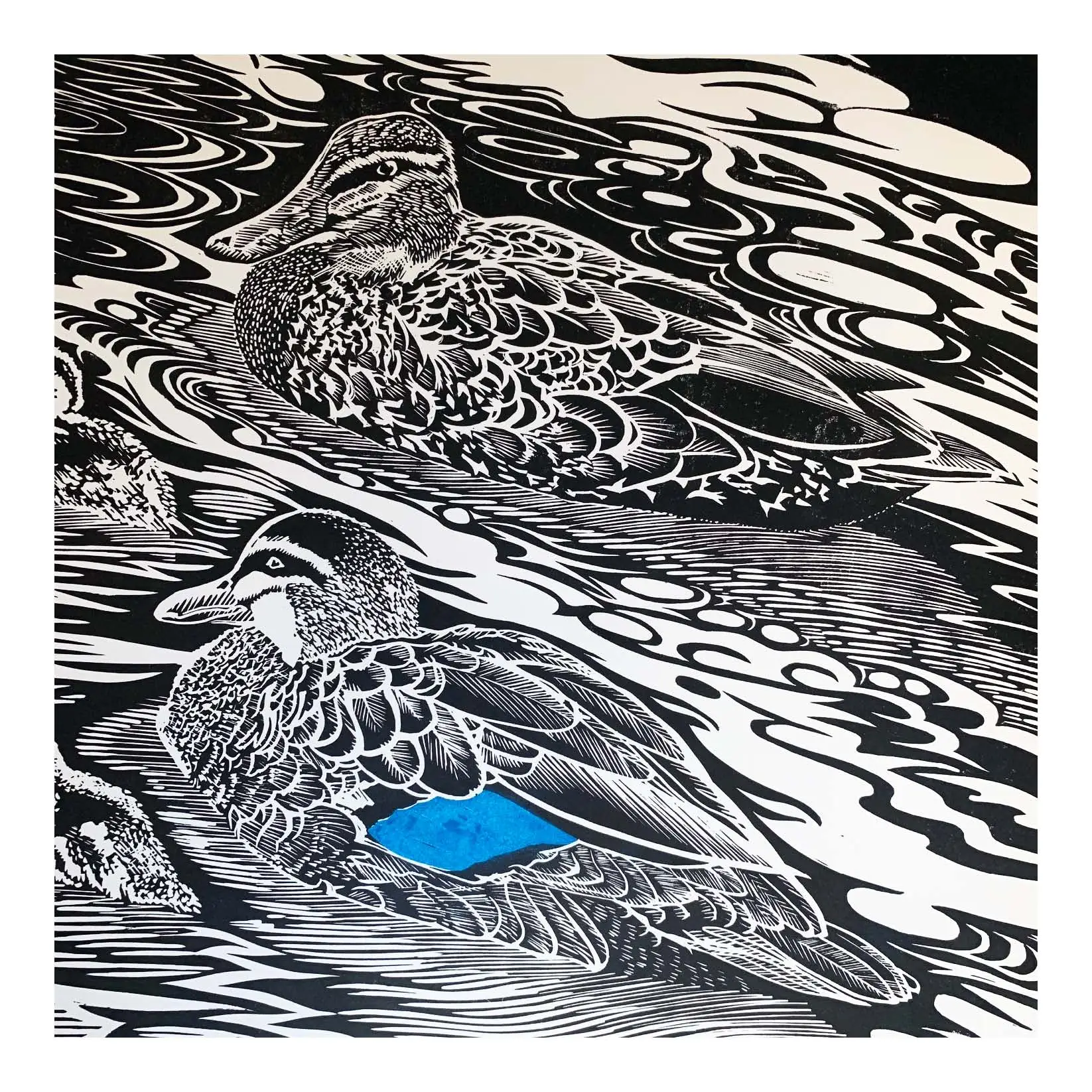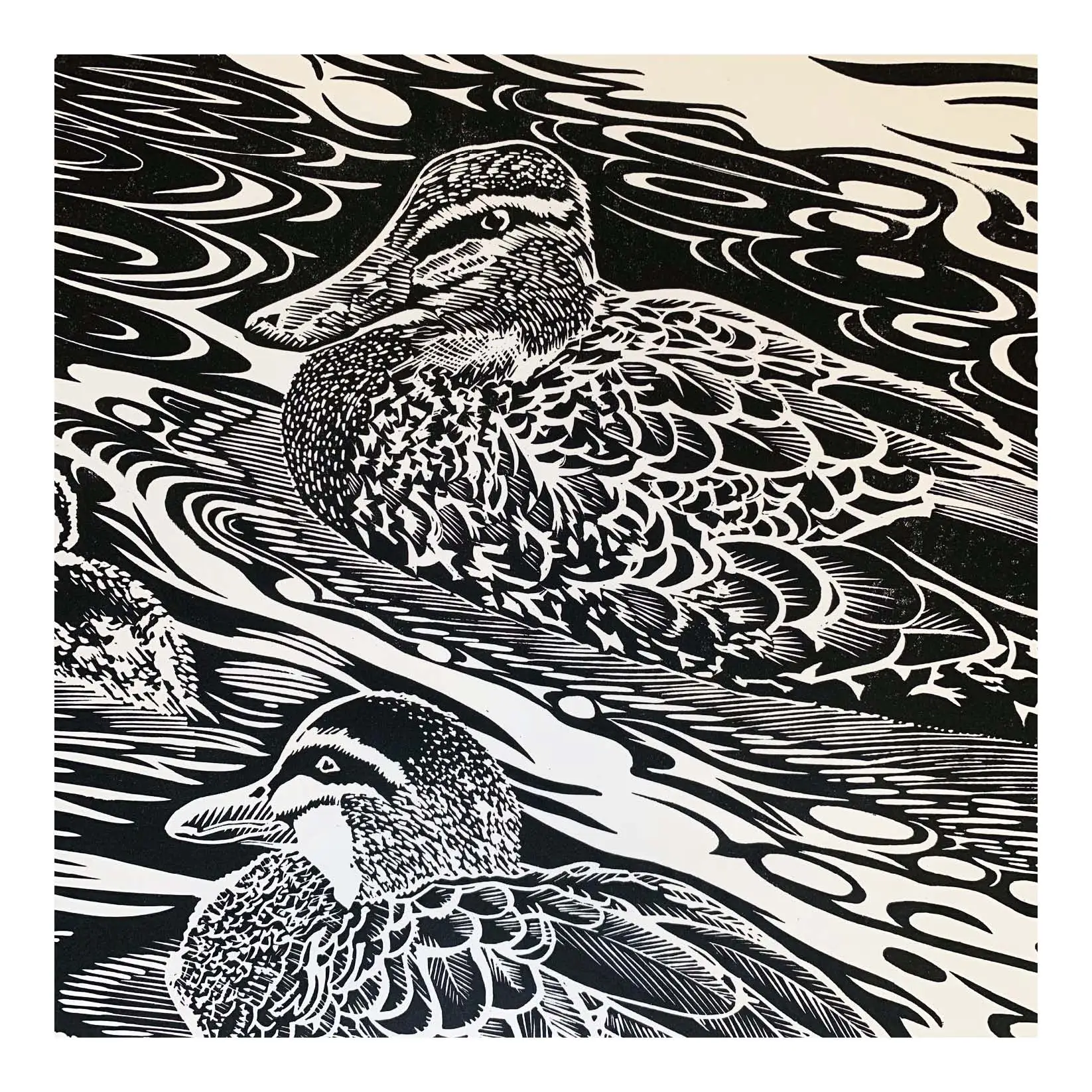 This open edition linocut is printed in black plus spot mica powder highlight on 250gsm Canson Edition archival paper stock. Print ships unmounted and unframed in a heavyweight cardboard flatpack, ready to be slipped into the frame of your choice.