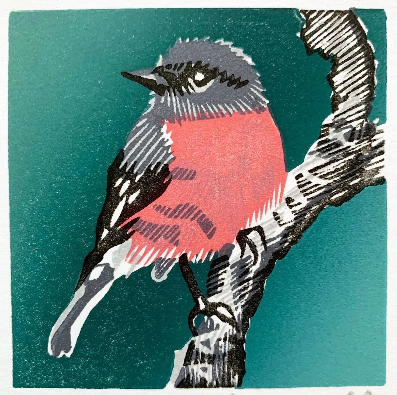 Pink Robin – Open Edition Linocut